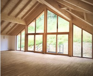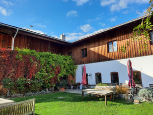 The Seminarhouse Holzmanstett, with its extensive garden, is located in a uniquely impressive, secluded location on 10,000 square meters. It is surrounded by meadows, fields, and forests, with views of the mountains.
